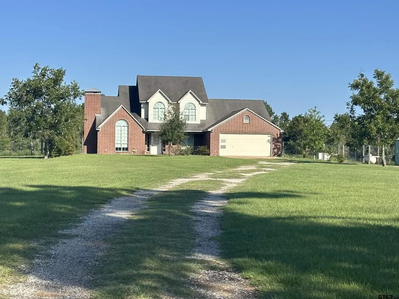 Charming 2 story 4Bdrm-2 1/2Bath brick home on 2.9 acres with guest home & many outbuildings. Discover the peaceful country setting in this beautiful updated home. The property includes 3 versatile outbuildings and a double wide home .. perfect for mother in law suite - guest quarter or rental income. Inside you'll find fresh interior paint, windows have been replaced and a recently A/C unit as well. Home offers hardwood flooring, barn doors, zoned heat/air, 2 car garage, 3 yr new roof, stove, DW & microwave purchased 2025!! Kitchen also has Breakfast nook overlooking countryside. The spacious downstairs master suite has fully updated master bath. Downstairs also has a large separate living area with built ins/closet, addn living/dining room with fireplace. Upstairs has game room/3rd living area, 2 bedroms and good size bathroom. Step outside to enjoy a covered patio, a gazebo and a large heavy-duty open metal shed covered for storing farm equipment and misc implements, etc. All surrounded by newly planted trees & shrubs with irrigation in place. The serene setting offers both privacy and charm making it the perfect place to call home. GENERATOR included - a must these days. New carpet & upgrades in progress.