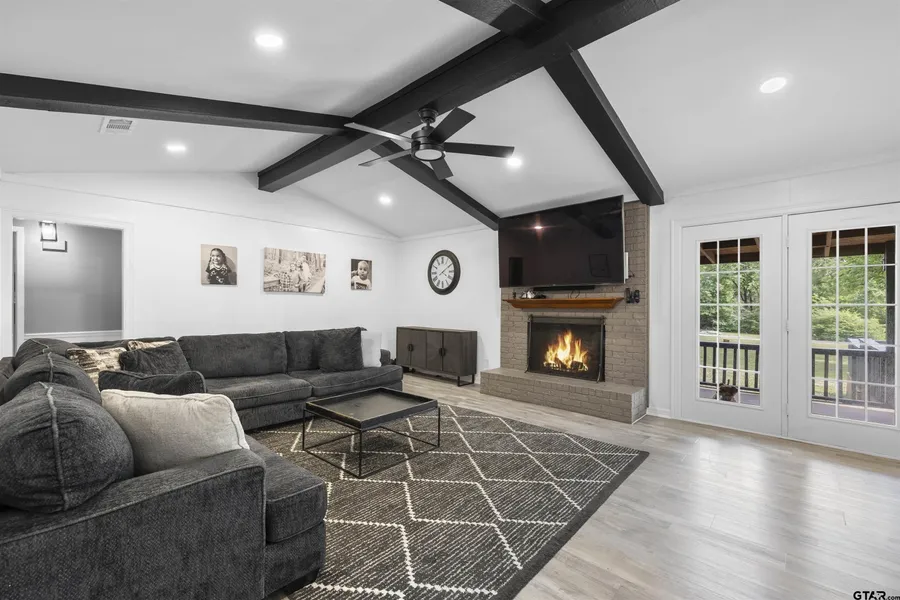 Tucked at the very end of a peaceful dead-end street, this beautifully updated home offers unmatched privacy, space, and flexibility — all nestled on a wooded ¾-acre lot in one of Tyler’s most desirable school districts: Jack Elementary, Three Lakes Middle School, and Tyler Legacy High. Surrounded by mature trees in a quiet neighborhood, this 3-bedroom, 3-bathroom home is perfect for anyone seeking a move-in ready home. Inside, you'll find two expansive living areas.. The main living room features vaulted ceilings, a brick fireplace with gas logs, and French doors that open to a large backyard, flooding the space with natural light. The second oversized living space is off of the kitchen and includes the third full bathroom and a newly installed kitchenette, making it ideal as a den, bonus room, or the perfect mother-in-law suite with private access from the exterior. The outdoor living space is just as impressive. Step onto the partially covered deck, perfect for entertaining or relaxing, and enjoy the expansive backyard with room for play, pets, or future additions. You will also find a spacious 500+ sq ft shed that offers endless potential as a workshop, studio, or storage solution. Major updates include brand new roofs on both the home and shed, installed in Fall 2024, and all-new energy-efficient windows throughout the home. Don't miss this rare opportunity to own a private, updated home with incredible indoor and outdoor space, flexible living options, and top-rated schools — all at the very end of a quiet street.