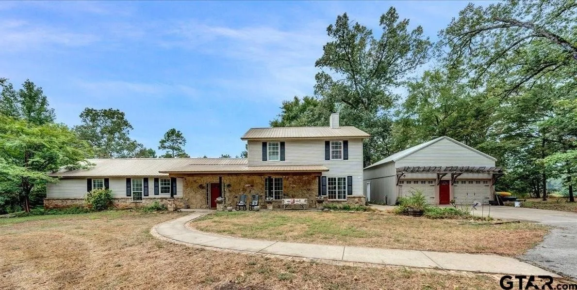 This gem sits on a sprawling 8.634-acre oasis & has it all! From the moment you arrive, you'll be captivated by incredible privacy, features, & amenities this Troup property offers! Step inside & immediately notice the wood ceiling feature that adds rustic elegance to the entryway. The spacious floor plan boasts two living areas, each with its own unique charm: one perfect for entertainment; the other provides a cozy retreat with wood-burning fireplace framed by beautiful rock detailing. Extra-large primary bedroom, located on main floor has walk-in closet, soaking tub, & separate shower. Upstairs are 2 additional bedrooms & full bath featuring shower & claw-foot tub. Additional features include new AC unit for primary room, durable metal roof, & tornado shelter for peace of mind. 2-car detached garage features above apartment & offers versatile space for guests or as rental opportunity. Practicality & comfort combined: 3 water heaters to ensure plenty of hot water, Well-water main pressure tank replaced in 2023, & updated kitchen appliances include oven, fridge, upright freezer, & microwave all convey with the property. Step outside: expansive back porch with hot tub conveniently located outside Primary bedroom. Above-ground pool & surrounding deck. Dog run, chicken coop, & ready-to-plant garden for your agricultural pursuits. Fire pit area for memorable evenings under the stars. Fruit trees dot the landscape & offer delicious seasonal treats. Woven-wire horse and livestock fencing, as well as an electric fence installed-2021. Enclosed mature hayfields. A deer stand nestled in the piney wood grove, enhances the appeal of outdoor living. Existing agricultural exemption (bee hives) which convey with the property are positioned out of the way near the fruit trees. The asphalt circular driveway (installed in 2019) provides easy access to the property. Don't miss the opportunity to make this enchanting property your forever home! CALL/TEXT LA SHELLY POLLARD 903.714.8268