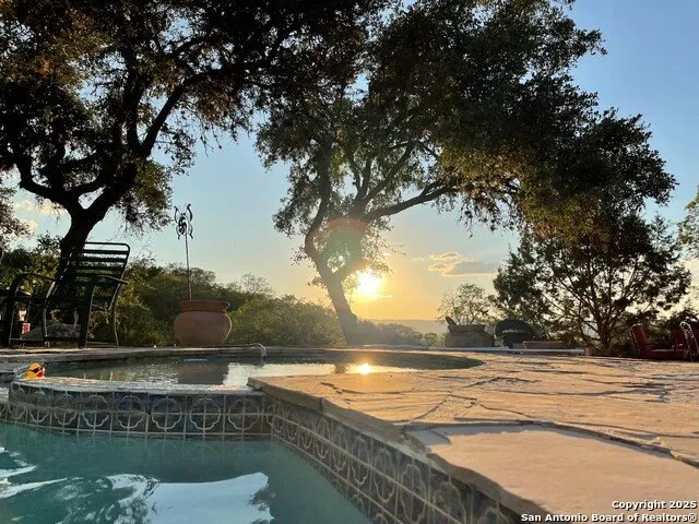 Welcome to a peaceful serene hillside with a gorgeous view of the Sabinal River Valley. The cool breeze and relaxing quiet hill country scenery can be enjoyed morning, noon and night. Mornings offer a view of the wildlife consisting of whitetail deer, feral hogs, feral rams, axis deer, wild turkeys, rabbits, squirrels, and armadillos. Several feeders and hunting blinds are scattered throughout the ranch for viewing or hunting the abundant wildlife. From noon to early evening, time can be spent under the many majestic oaks, elms and rare madrone native trees. The backyard swimming pool offers a cool and refreshing respite from our Texas summers. When evening approaches and the day light flickers, you can look towards the west from the backyard, the primary bedroom or the front yard and see the most specular sunsets that descend slowly behind the light baby blue mountains to the west here at the Sunset Ranch. As night approaches, the dark skies open up displaying the brightest stars and the most amazing planet viewing imaginable. Then you can sit back and enjoy, reflecting on what a marvelous and peaceful day it has been here, where dreams are made possible.