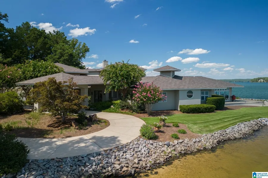 In Trillium on Lake Martin's west side, 1020 Wake Robin is a landmark home renowned for captivating features. A white sandy beach, meticulous flat lot, unique architecture, and expansive water view make this property truly exceptional. With 6,400 sq ft, 5 beds, and 3.5 baths, the house elegantly curves along 850ft of shoreline. A private island, included, extends the lot by 500 ft. Inside, limestone floors and curved walls adorn the foyer. The living room's round shape offers panoramic views of Lake Martin. The kitchen gleams with high-end finishes, double oven, gas cooktop, wet bar, and natural light. The sunroom opens onto a patio with breathtaking lake and sky views. Primary suite, with wall of windows, intimately connects with water. Primary bath, sitting room, closet area add luxury. Guest wing offers spacious bedrooms and shared bath; an observation bedroom provides a 360-degree la...