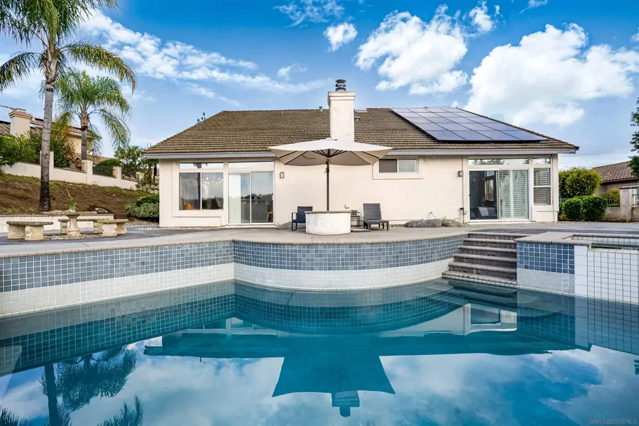 Welcome to Oak View Way, a beautifully upgraded home nestled in the highly sought-after Hidden Trails community of Escondido. This residence captures the essence of Southern California living with open, airy interiors and seamless indoor-outdoor flow. Enjoy a chef-inspired kitchen featuring elegant finishes and modern appliances, perfect for entertaining or quiet evenings in. Large windows frame serene mountain views, while the landscaped backyard offers a peaceful retreat with a covered patio, mature greenery, and space for gatherings. Additional features include owned solar panels, a whole-house fan for enhanced energy efficiency, and an EV charger, providing modern convenience and sustainability. Located near hiking trails, scenic parks, and top-rated schools, this property blends comfort, elegance, and convenience in a truly desirable location.