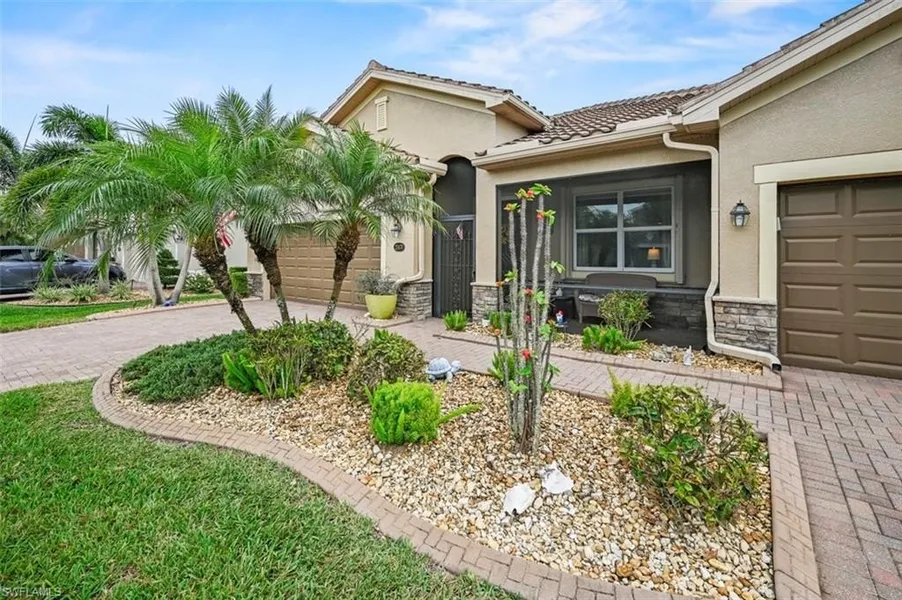Wake up to sunshine, swaying palms, and the quiet sparkle of your own private pool. This Bella Terra home feels like a peaceful hideaway, tucked inside one of Estero's most loved, tree lined neighborhoods where everything slows down just a little. This popular Raphael floor plan offers 2,433 square feet of easy living with four bedrooms, three full bathrooms, and a split three car garage. The layout gives everyone their own space while still feeling warm and connected, which is exactly what makes this home so livable. Step through the front door and you are greeted by light, openness, and a sense that this house has been well cared for. Formal living and dining rooms give you space for holidays and gatherings, while the kitchen flows right into the family room so no one is ever left out of the conversation. There is even a built in bar with a wine cooler, perfect for entertaining or winding down after a long day. Out back is where this home truly shines. The oversized screened lanai wraps around a heated pool and spa, all overlooking a quiet preserve. No neighbors behind you, just nature, sunshine, and privacy. The extended lanai gives you full coverage over the pool so you can enjoy it year round, rain or shine. Whether you are floating on a summer afternoon or soaking in the spa on a cool evening, this is where memories are made. The home also brings real peace of mind with a newer roof from 2019, full hurricane protection, and a location outside of the flood zone. Southern exposure fills the home with natural light all day long, making everything feel bright and welcoming. And then there is Bella Terra itself. Set across 999 acres with preserves, lakes, and a resort style clubhouse, this is a community where people actually know their neighbors. From the fitness center, water aerobics, and pickleball to bingo nights, food trucks, and walking trails, there is always something going on. Kids love the shaded playground and pools, adults love the social calendar, and everyone loves the peaceful butterfly garden and miles of conservation views. This is not just a house. It is a lifestyle, a retreat, and a place where your next chapter can truly begin.