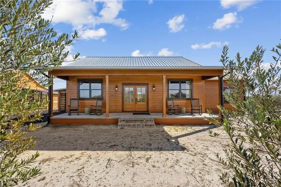 The exterior welcomes you with cypress siding and a durable metal roof, offering classic Southern style with lasting quality. A screened-in back porch captures peaceful orchard views and gentle morning sunrises, while the expansive front porch is perfect for sunset dinners, relaxing with a book, or entertaining guests.