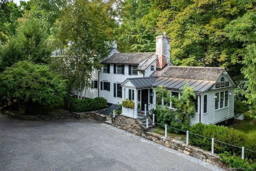 This 1807 New England home stands prominently in Salisbury's Historic District, gracing 1.4 pristine acres. The main residence exemplifies timeless architecture with five working fireplaces and seamless updates that honor its historic integrity, including a newly renovated kitchen with custom cabinetry and sleek countertops. A comprehensive heating and cooling system ensures year-round comfort, enhanced by radiant floor heating in the primary bathroom. The thoughtfully designed main house flows beautifully to the remarkable 1810 carriage house, now transformed into additional living space with two bedrooms. The property's crown jewel is the heated gunite pool with an automatic cover, creating an elegant outdoor entertainment space. Both structures showcase meticulous craftsmanship with cedar shake roofs, copper gutters, and refined details like the radiant-heated exterior staircase for snow and ice management. The paved driveway features distinctive cobblestone edging, elevating the property's classic appeal. Set in the heart of Litchfield County, this historic retreat seamlessly combines village convenience with private sanctuary. The grounds include a serene private garden and direct access to the scenic rail trail, offering the perfect balance of accessibility and seclusion in Northwest Connecticut's most sought-after town.