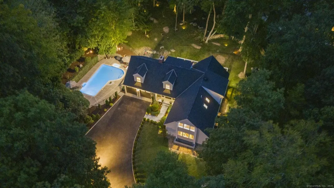 Welcome to this exceptional 5-bedroom, 5.5-bathroom residence in Stamford's highly coveted Westover neighborhood, thoughtfully and completely renovated to offer the perfect blend of modern luxury and timeless elegance. Nestled on a private, manicured lot, the property features beautifully lit stone columns, walls and a granite walkway and landing that set the tone for this spacious family retreat. Inside, you're greeted by a dramatic curved staircase with detailed millwork, leading to a large formal living room, dining room and a stunning open-concept kitchen featuring a 9-foot quartz island, 6-burner gas stove, pantry and top-tier appliances. The kitchen flows seamlessly into a warm and inviting family room with a wood-burning fireplace and sliders to the outside, followed by a mudroom and full bathroom. Unique to this home is the generous first-floor primary suite, complete with walk-in closet, a spa-inspired bathroom featuring radiant heated floors, dual vanities and an oversized shower. A large home office with custom built-ins and half bathroom complete the main level. Upstairs, you'll find four spacious ensuite bedrooms, as well as a media room with soaring cathedral ceilings and a private balcony overlooking the pool. The recently finished basement includes a fully equipped home gym, expansive recreation area and a custom laundry room with built-in counter and laundry sink. The interior has been freshly painted with custom millwork.
