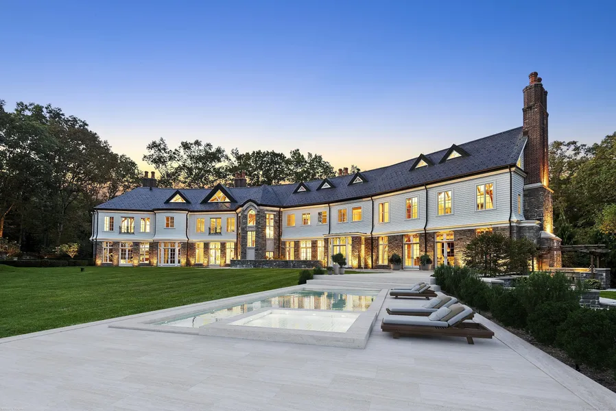 119 Proprietors Crossing is a breathtaking estate by architect James E. Gearity. Set on four acres, this fully restored six-bedroom home blends timeless elegance with modern function. A private drive and grand fountain lead you in to a soaring foyer with a sweeping staircase beneath a dramatic Baccarat chandelier. The parlor, with one of seven fireplaces, flows to a serene terrace. The Blue Room offers a refined retreat, while the study, with a coffered ceiling and secret staircase, connects to the primary suite. The formal dining room glows under another Baccarat chandelier. Adjacent is the chef's kitchen, now complemented by the family kitchen in the Great Room featuring an enormous leathered quartz island. This room, with a 35.5-ft vaulted ceiling, boasts integrated high-end speakers as part of a whole-home audio system. The primary suite showcases a new 800 sq. ft. dressing room and a gorgeous two level bathroom with freestanding tub. The lower level of the home offers a media room, gym and wine grotto. The outdoor space includes a dining pavilion, outdoor kitchen, and a brand-new pool with spa. Built for luxury and efficiency, the home has commercial-grade systems, SIP walls, a Welsh slate roof, radiant heat, and 14 temperature zones for your comfort. Additional features include a four car garage and an elevator accessing all levels of the home. This newly restored gem incorporates enhanced functionality for today's buyers, built to last for gener