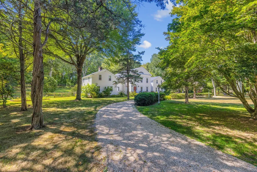 The Scranton House. This Quintessential New England historic Greek Revival blends old world charm with modern luxury living! Built by a prominent Connecticut businessman and government leader, was constructed circa 1830 and first stood on the grounds of the Madison memorial library and was moved to its current location in 1988. Nestled on two immaculately manicured park-like acres and backing up to the country club of Clinton, this home is truly unique. Beautiful exposed beams are prominent throughout as well as the wide-plank white pine and maple floors. The main level features an oversized country kitchen with stone countertops, hearth room with granite fireplace, large formal dining room, expansive family room with French doors and a home office that completes the space. Ascend to the second floor via one of two staircases to find a stunning primary bedroom suite with fireplace, walk-in closets, mosaic-tile shower and dressing area. Three additional bedrooms plus large rec room with wet bar, could be serve as a potential in-law suite! Plentiful storage is evident by a large walk-up attic and basement which feature 9-foot ceilings and direct access to the oversized garage. A new architectural roof was installed Spring of 2025. Conveniently located to popular local attractions such as Town's Beach, West Beach, Pilot's Point Marina, Bill's Seafood, Menuketesuck River and McKinney Wildlife Refuge. This breathtaking one-of-a-kind home is not to be missed!