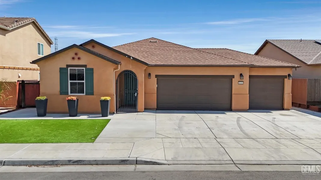 Take a look at this beautiful home in North-West Fresno, nestled in a family-friendly neighborhood and loaded with upgrades! Enjoy the convenience of a finished 3-car garage, custom wrought iron security gate, low-maintenance turf front yard, modern LVP flooring, tented windows for added efficiency, and a large storage shed. The open great room is perfect for gatherings, featuring a stunning kitchen with a spacious island, granite countertops, stainless steel appliances, and ample cabinetry. Natural light fills the dining and living areas, creating a warm and inviting atmosphere. Bedrooms offer generous closets, while bathrooms have been meticulously maintained. Step outside to a backyard designed for both relaxation and function, complete with a covered patio, grassy area, spacious side yards with iron fencing ideal for a dog run, and plenty of storage. Don't miss this move-in ready gem...