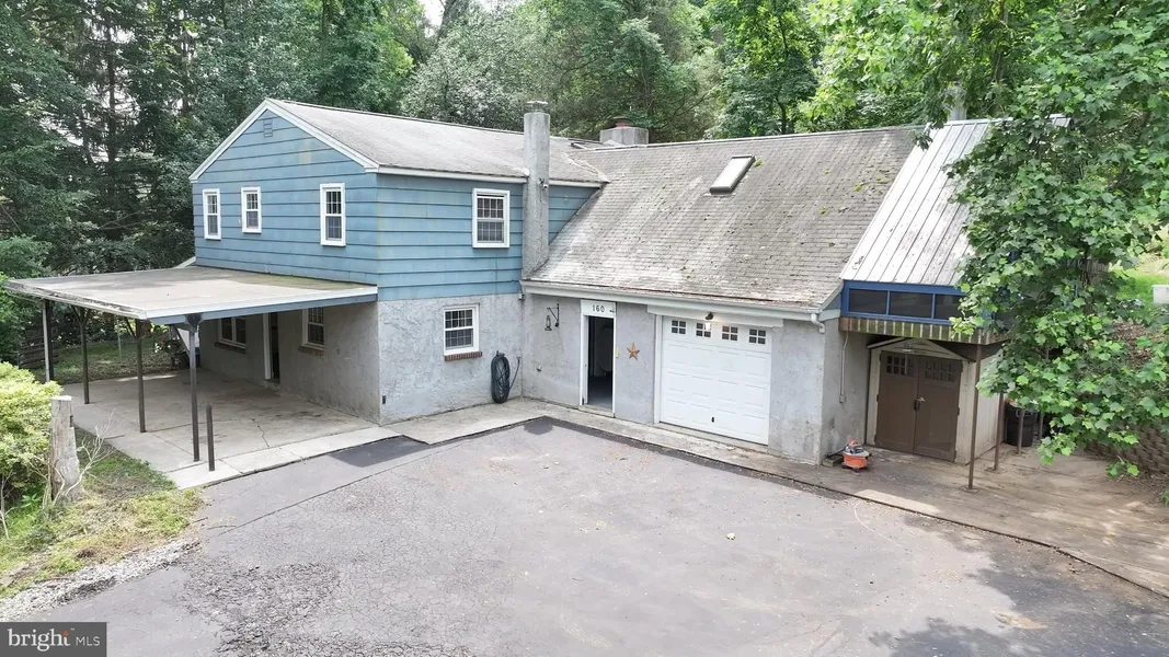 Welcome to 160 Stoney Bank Road, Glen Mills - Thornbury Township, Delaware County. Perched at the very top of the hill and nestled on nearly 8 acres of woods and pasture, this unique property offers a lot of privacy with the peaceful feel of a mountain retreat. This 3-bedroom, 4-bathroom home is a rare find, combining rustic charm with open, natural surroundings. The first floor includes the kitchen, dining room and a large family room with a wood burning fireplace. A large enclosed porch is also located off the family room and provides access to the outside. There is also an oversized one car garage and large utility room with a bathroom. Upstairs includes 3 bedrooms each having their own bathroom. The center hallway is open and looks down into the family room with a vaulted ceiling and exposed wood beams. For years, this property has served as an animal rescue safe haven helping hundreds of animals. With a large pasture, run-in shed, and a barn originally equipped with 4 stables, the land is well-suited for equestrian or hobby farm use and offers an exciting opportunity for the next owner to restore or reimagine the space. Whether you're looking for a peaceful rural escape, space for animals, or a unique property to make your own, 160 Stoney Bank Road offers exceptional potential to someone with a vision of improving the existing home or explore subdivision options. Located just about a mile away from Route 1 and Route 322, with local shopping at Brinton Lake shopping center, Costco, and Target. So close to major shopping centers and restaurants but tucked away nicely from the hustle and bustle of everyday life. Enjoy the low taxes of Thornbury, Delaware County, while being in the Award Winning West Chester Area School District!