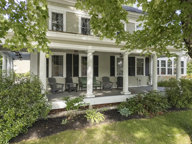 The Gideon Hasting House. Nestled in the heart of Bethel's Historic District, The Gideon Hasting House is a remarkable Greek Revival residence that stands proudly on the National Register of Historic Places. This stately home, built in 1848, offers a rare blend of historical charm, modern amenities, and endless possibilities. With over 5,000 square feet of living space, this six-bedroom estate spans three levels and has been diligently renovated to preserve its period details, including handmade custom molding, finials & flutes throughout home, decorative tin ceilings and hardwood floors. Once a celebrated hotspot as an exclusive restaurant and martini bar, the Gideon Hasting House is steeped in local history and has the potential to return to its former glory as a business, whether as a restaurant, event space, or boutique inn. The expansive home features a spacious chef's kitchen complete with an authentic pizza oven, ideal for culinary enthusiasts or restaurateurs looking to create something special. The versatile floor plan includes six bedrooms, two of which have ensuite baths, a third-floor studio apartment with a private entrance perfect for guests, rental income, or staff, and ample space throughout for entertaining or relaxation. The property is ideally situated, overlooking the Bethel Inn Resort's 18-hole golf course and 200+ acres of Nordic skiing and mountain biking trails. Just across from the picturesque Town Green and within walking distance of Gould Academy, it's the perfect location to embrace Bethel's vibrant mountain lifestyle. The beautifully landscaped grounds include a wraparound porch, a bocce ball court, and historic gas-powered street lights, adding to the home's welcoming ambiance. Whether you envision it as a private residence, a premier event venue, or a charming inn, The Gideon Hasting House offers a unique opportunity to live, work, and play in one of Maine's most scenic and storied locations.