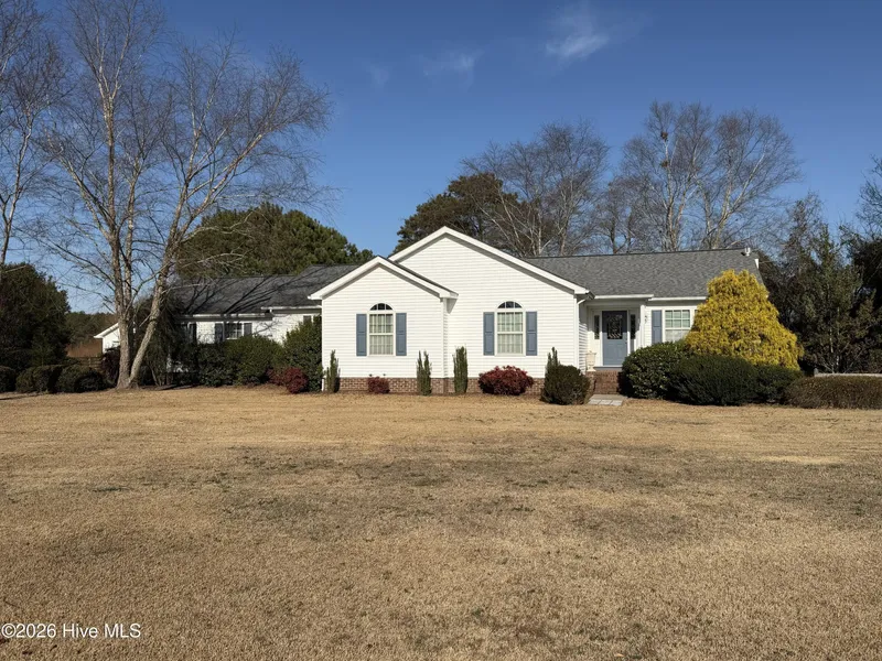 Stunning 3-bedroom, 3-full-bath rural home with 2,053 sq ft of heated living space on 1.75 acres outside city limits - no city taxes and no HOA! Fully remodeled in 2018 with major upgrades including: new roof with architectural shingles (Lifetime warranty in place), Trane HVAC (10-Year Warranty), updated electrical and plumbing, fresh paint, and refreshed finishes throughout. Inside you'll find engineered hardwood floors in main living areas, porcelain tile in 2 of the 3 bathrooms, and cozy carpet in the bedrooms and living room. The home features vaulted ceilings and energy-efficient windows, creating a bright, open, and airy feel filled with natural light. Exceptional outbuilding and covered storage setup includes: a 2-car attached garage, 24x24 wired detached 2-car garage, 20x20 wired workshop/1-car garage with built-in workbench, additional covered storage shelter, and two 10x12 storage sheds - all in excellent condition. With 5-car total covered capacity plus workshop and hobby space, there is ample room for vehicles, boats, kayaks, tools, and hands-on projects. Stay connected with multiple high-speed fiber internet options including Spectrum and Infinity Link - perfect for remote work, streaming, and gaming. A private dedicated well supports irrigation, outdoor watering, outdoor cleaning, and washing equipment. Enjoy outdoor living on the full-length rear deck with a screened-in section for year-round enjoyment, surrounded by mature landscaping, grapevines, and fruit trees including pear and apple. Great location! Halfway between Kinston and Greenville. Move-in ready, meticulously maintained, and truly one of a kind - a rare opportunity to enjoy modern comfort, peaceful country living, a scenic lake view as a bonus, and the functional space today's buyers value most.
