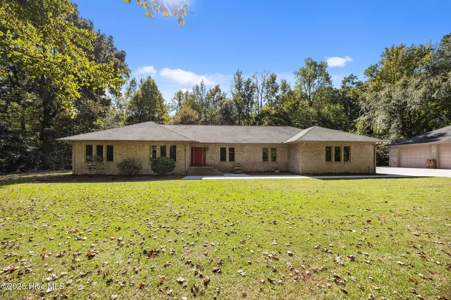 $20k ALLOWANCE TO USE AS YOU CHOOSE!! Just outside Greenville's city limits sits a welcoming family home in your very own forest. just 20 minutes from the medical district and 15 minutes from downtown Greenville and ECU. This updated single level residence, offers over 3,200 square feet of sophisticated comfort surrounded by nature's tranquility. Set on a 5,1 acre wooded lot on a private road, this property delivers the perfect balance of privacy and convenience. Inside, rich red oak hardwood floors flow throughout the main living spaces, complementing a thoughtfully renovated interior. The chef's kitchen impresses with new quartz countertops, white tile flooring, and a suite of new premium KitchenAid appliances, including a double oven, dishwasher, and cooktop. The home features expansive bedrooms, including a primary suite so big it could be considered another living space, complete with dual walk-in closets and two full ensuite baths. The inviting family room centers around a real wood-burning fireplace, with floor to ceiling windows looking over your brand new deck and serene backyard. Every detail reflects quality and care, with bathroom renovations, a new heat pump (2022) replaced ductwork (2024) and a new concrete driveway enhancing both comfort and efficiency. The encapsulated crawl space with dehumidifier and conditioned storage room add to the home's superior functionality. Also, this custom built home is wired for a backup generator for ultimate peace of mind. To go along with it's attached two car garage and completing the property perfectly is a massive 1600 sf detached and powered garage and workshop, featuring modified doors to accommodate taller boats/campers--or any other toys a fisherman, carpenter or outdoorsman would find ideal. This exceptional estate harmonizes timeless craftsmanship, modern amenities, and an oasis from the bustle without being far from the conveniences.