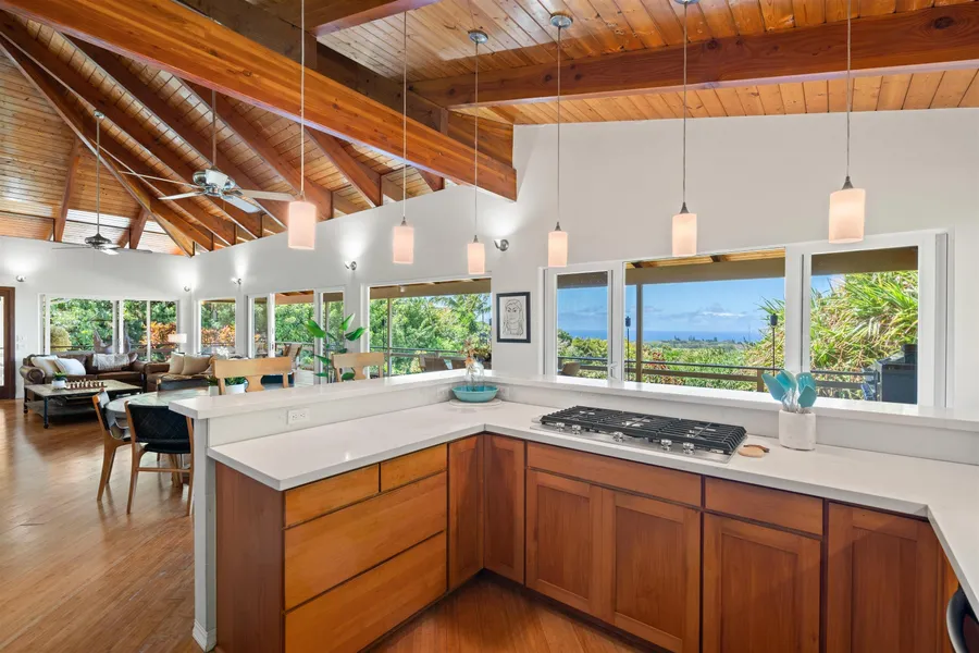 This Haiku estate delivers both ocean and Haleakala views from a spacious 4-bedroom, 3-bath home set on a fully fenced acre with an automatic private gated entrance. This is the ideal setup for accommodating a large family, or multiple guests with ample space for privacy and separation. The home features an open floor plan framed by large windows that flood the space with natural light and showcase the incredible views. The seamless flow between the kitchen, living, and dining areas creates a bright and comfortable atmosphere. Off the main living area is a massive 888 sq ft lanai with multiple seating areas and outdoor cooking space. The primary master suite includes an en-suite bathroom, a large walk-in closet with custom-built-ins, and a private lanai looking over large pasture lands towards Giggle Hill, perfect for quiet mornings or relaxing evenings. An added bonus is a guest su...