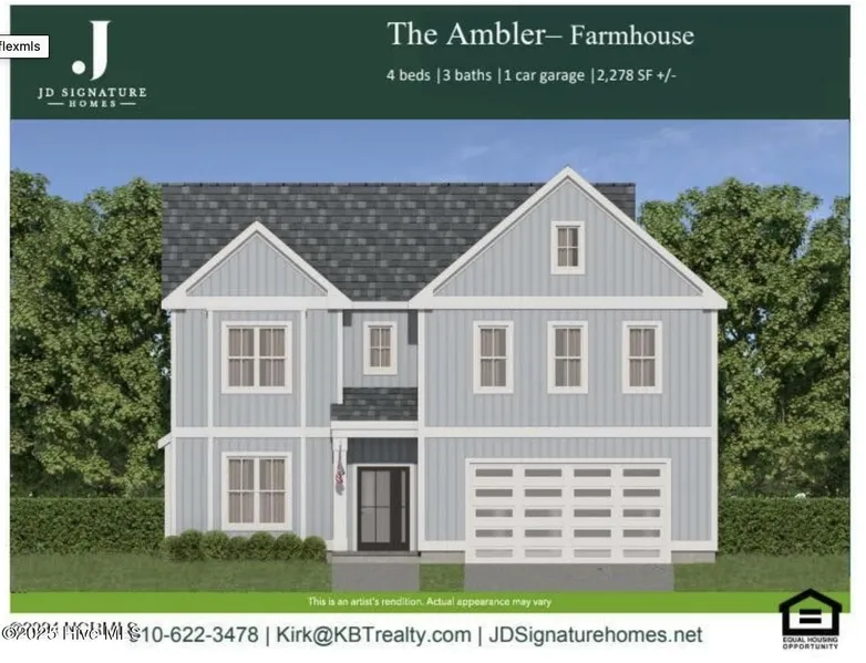 Welcome to your new home, where Southern charm meets modern luxury. This stunning AMBLER floor plan by JD Signature Homes offers 2,278 square feet of elegant living space, featuring 4 bedrooms and 3 bathrooms designed for comfort and style. The open-concept first floor is a true highlight, starting with a spacious kitchen that boasts a large island, soft-close cabinets, and sleek granite countertops. A modern subway tile backsplash adds a contemporary touch. The generous pantry provides additional storage, while a well-designed mudroom off the garage keeps everything organized and clutter-free. Adjacent to the kitchen, the bright dining area and inviting living room are perfect for gatherings. The cozy fireplace with a stylish beam mantel adds charm and warmth, ideal for cool coastal evenings. An abundance of windows bring in natural light and allow the Carolina breeze to flow throughout, creating a warm and open ambiance. Upstairs, the spacious owner's suite is a serene retreat, featuring a luxurious tiled shower and a walk-in closet. Three additional bedrooms offer plenty of space for family or guests, while a shared bath and an upstairs laundry room with hookups add convenience. Throughout this modern farmhouse, beautiful fixtures and finish options provide a foundation for you to add your personal touch. This thoughtfully designed residence harmoniously blends classic Southern charm with modern amenities, making it the perfect setting for creating lasting memories. Photos are representative and may include optional features.