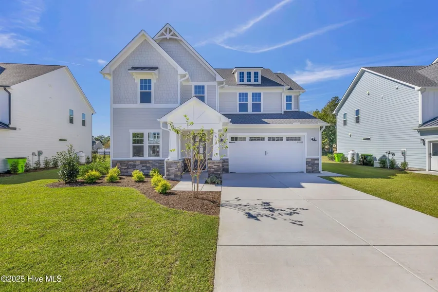 MOVE IN READY | Built by Robuck Homes, a trusted local builder known for quality and craftsmanship, the Hampton Craftsman welcomes you with an inviting foyer that opens into an expansive main living area designed with both beauty and function in mind. The heart of the home is the gourmet kitchen, showcasing elegant pure white quartz countertops, abundant soft-close cabinetry, and a spacious walk-in pantry. A gas range adds a chef's touch, while the built-in oven and microwave combination provide both convenience and style. This thoughtfully designed space blends performance and sophistication??perfect for cooking, gathering, and entertaining. The open-concept dining and living room is enhanced by wide sliding glass doors that extend your living space outdoors and a fireplace that anchors the room with warmth and charm. On the main floor, you'll also find a private guest bedroom, ideal for visitors or multi-generational living. Upstairs, the primary suite is complemented by two additional bedrooms, a versatile loft, and a convenient laundry room. Designer details throughout include hardwood stairs, designer tile in all bathrooms, and high-end finishes that elevate every space. As part of the sought-after WyndWater community, you'll enjoy exceptional amenities including a zero-entry pool, charming pocket parks, and wide-open green spaces for relaxation and recreation. Don't miss your chance to call this stunning Robuck home yours!