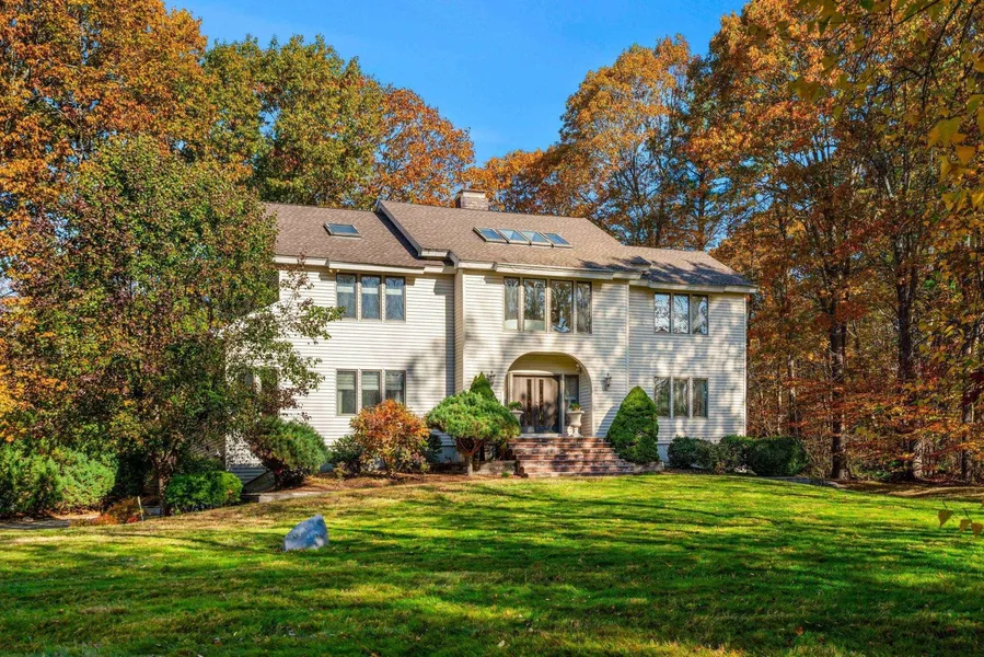 Set on a quiet cul-de-sac in Hampstead, this remarkable contemporary home combines striking design with everyday comfort. The moment you enter, a dramatic curved staircase, soaring ceilings, and a stunning marble double-sided fireplace set the stage for what’s to come. The sunken living room is surrounded by expansive windows, filling the space with natural light and creating an inviting atmosphere for both gatherings and quiet moments. The open dining area flows effortlessly into a peaceful sunroom perfect for sipping coffee or enjoying an evening read. The kitchen provides a great foundation with ample space and a layout ready to be reimagined into your dream cooking space. A convenient first-floor laundry with half bath, and a warm, welcoming family room with fireplace add to the home’s thoughtful layout. Step out to the oversized covered porch and enjoy the outdoors year-round, wheth...