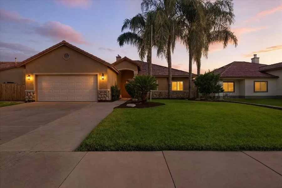 This home blends character, comfort, and style in one thoughtful design. Natural hardwood floors flow throughout the living spaces, while vaulted ceilings and a fireplace create a warm focal point in the living room. The kitchen has been updated with modern countertops, cabinetry, and stainless steel appliances, combining everyday function with timeless appeal. The split floor plan offers privacy for the primary suite, complete with built-ins, while French doors open to a versatile bonus room that could serve as an office, retreat, or fifth bedroom. Three additional bedrooms and a full bath line the hallway, each spacious and inviting. Designer paint and a curated mix of modern and antique touches add depth and charm to every room. Outside, a large covered patio overlooks the gated (removable) lap pool and a lush grassy area, creating a private retreat for both relaxation and entertaining. The home also features solar for energy savings, along with an assumable VA loan at approximately 3.5% interest and a monthly payment around $1,900 (including taxes and insurance)-a rare opportunity in today's market. In a desirable Northwest Hanford neighborhood, it balances tranquility with easy access to shopping, dining, and just a short drive to NAS Lemoore.