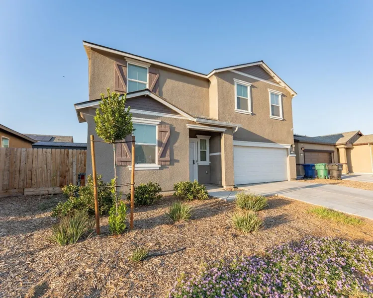 Welcome to the Marigold plan at Live Oak! This two-story home features generous living space, ensuring room for every activity, occasion, and member of the family. The main floor offers a spacious kitchen with center island, ample storage and corner pantry that flows into the open concept dining area and great room - plus a convenient downstairs bedroom and full bath located just off the foyer, ideal for guests or multi-generational living. Upstairs, you'll find four additional bedrooms- including a luxurious primary suite with an airy, bright walk-in closet and vanity in the en-suite retreat along with a third full hall bath and laundry room. This home's solar system guarantees efficiency, producing almost 400 kWh of solar energy and equipped with a backup battery. The backyard is generously sized, providing endless possibilities for outdoor living and entertaining. Don't wait, schedule your tour today!