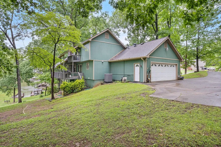 Double Lot on the Lake! Welcome to your dream escape, a stunning lakefront property offering serene waterfront views, unmatched privacy, and refined comfort. This well-maintained 3-bedroom, 2-bathroom home is perfectly positioned on a rare double lot, offering expansive outdoor space and a private dock for effortless lakefront living. Step inside to find a spacious, light-filled interior where a grand living room with vaulted ceilings creates a dramatic yet inviting atmosphere. The wrap-around deck, accessible from the main living area, spans the lakeside of the home-ideal for entertaining, sunset dining, or simply relaxing as the water shimmers below. Upstairs, the private primary suite offers a peaceful retreat with lake views and thoughtful design. Downstairs, a full unfinished basement, already plumbed, presents limitless potential for customization. Whether you envision a guest suite, media room, gym, or wine cellar, the space is ready to be transformed. Recent updates add even more value: the HVAC system is just 1 year old, ensuring year-round comfort and efficiency, and the septic tank has been professionally serviced within the past year. Additional highlights include a two-car garage, plenty of parking and storage, and easy access to your private dock, making this a perfect haven for boating, fishing, or soaking in the tranquility of lakeside living. With its spacious layout, exceptional care, and premier lakefront location, this property delivers the luxury lifestyle you've been waiting for. Don't miss the chance to make it yours.