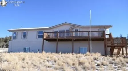 Welcome to the country! This is the piece you have been waiting for in the heart of Park County. Located far enough from the main highway to enjoy the privacy and the great outdoors but close enough to take a run into town when needed. This small acreage parcel offers expansive views of the surrounding mountains and hills. Enjoy the sunset from the large deck at the front of this raised ranch style home. Main level features include a large living room with a pellet stove at the center to keep you extra warm, dining area and country kitchen with a center island, loads of cabinets and plenty of counter space. The primary bedroom features a walk- in closet and a 3/4 bathroom with double sink vanity. Two additional bedrooms and the laundry are all on this level. Step into the walk out basement and you will find plenty of room to finish a game room or family room and a separate area partially...