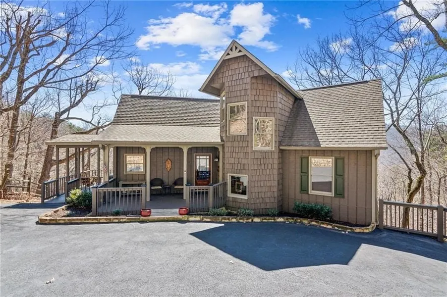 Stunning Views! Charming Architecture! Wonderful Location! This meticulously maintained, and updated, 3 Bedroom, 3.5 Bath home features a one-of-a-kind floor plan and setting rarely found in Big Canoe. With views from every room, you'll appreciate the Cottage feel and finishes throughout. The main level offers Vaulted Ceilings, Hardwood Floors, a Wall Of Windows, beautiful Wood Burning Stone Fireplace, completely updated kitchen, primary suite and half bath. An impressive oversized deck and covered side porch are perfect for outdoor entertaining. Your guests will love the lower level featuring two ensuite guest rooms, a Den with a Second Wood Burning Fireplace, beautifully finished Laundry Room and access to an open spacious deck. Two additional features to this Very Special Cottage are a Cozy Upper Level Private Office/Craft Room with beautiful view, and for your furry friends, a very ...