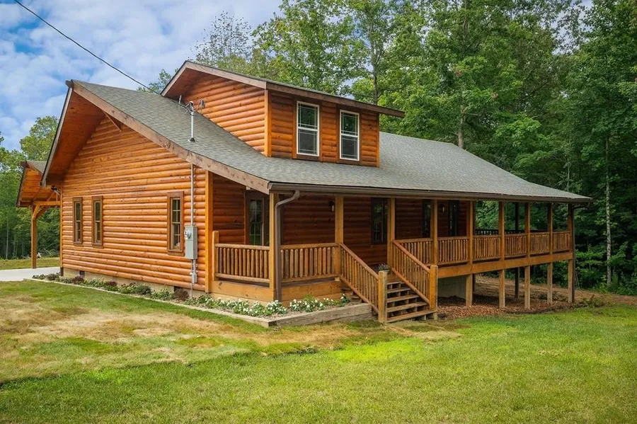 This stunning new-build cabin-style home is move-in ready and offers the perfect blend of rustic charm and modern comfort. Featuring a spacious 3-bedroom, 2-bathroom layout with an open floor plan, the home boasts soaring vaulted ceilings that create an airy, inviting atmosphere. A large upstairs bonus room provides flexible space for a home office, playroom, or additional living area. The 3/4 wrap-around porch is fully covered, ideal for relaxing outdoors in any weather, and the attached covered carport adds convenience and protection. With thoughtful design and quality craftsmanship throughout, this home is ready for you to settle in and enjoy.