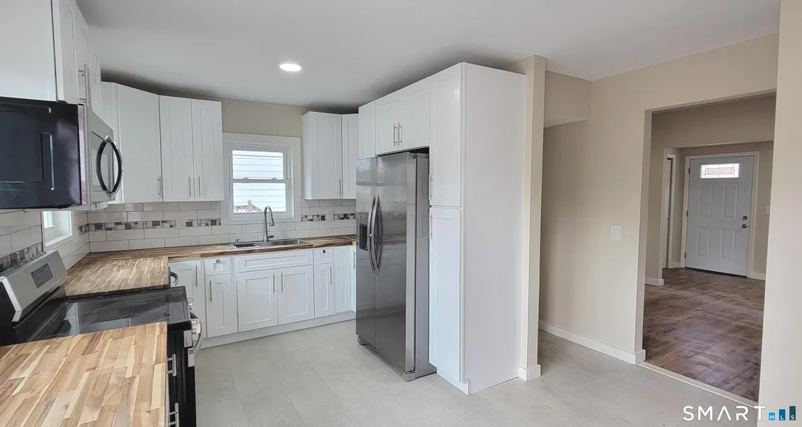Move-in ready and fully remodeled home-perfect for first-time buyers! This updated property features an open-concept main level with a brand-new kitchen, breakfast bar, ample storage, and a convenient half bath. Recent upgrades include new appliances, new windows, new flooring, LED lighting, and energy-efficient mini-split heating and cooling throughout, offering comfort and low utility costs. Major system improvements provide peace of mind, including a new 200-amp electrical panel, all new water lines, new water meter, with new shutoff valves. The roof was replaced in November 2023 per town records, and the garage roof is brand new. The finished one-bay garage includes a loft, mini-split, rear storage door, and flexible space ideal for a home office, gym, studio, or workshop. Exterior highlights include off-street parking, a backyard, and low-maintenance composite front and rear decks, ...