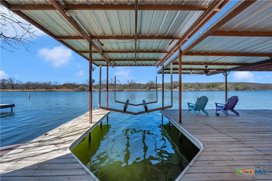 Price Reduced $600,000!!! OPEN WATERFRONT- MAIN HOUSE WITH SEPARATE GUEST HOUSE & 30X40 STORAGE BUILDING WITH TWO 14FT ROLL UP DOORS! The main house, updated in 2019, features 3 bedrooms & 3 baths with breathtaking lake & ranch views from the moment you walk in. The open-concept living area includes an updated kitchen with soft-close custom cabinetry, high-end granite countertops, & a gas range. Both the front and back patios have low-maintenance Tech Decking, perfect for relaxing and entertaining. The primary suite offers a custom-built stackable washer/dryer for added convenience. On the lower level, a spacious flex room serves as a third bedroom, game room, or guest suite & includes a full bath, closet, & a full-size laundry room. The oversized two-car garage provides additional storage and convenience. Step outside & take in the stunning Hill Country lake views from your private boat dock, complete with a metal roof, boat slip with electric lift, two jet ski lifts, & a rope swing on the top deck. A built-in stone fire pit with bench seating creates the perfect spot to unwind & enjoy breathtaking sunsets. Across the street, your guests will have their very own private retreat in a two-story,3-bedroom, 2.5-bath guest house. Built in 2019, this beautifully designed home features wood-textured flooring throughout & high-end granite countertops & plenty of easy access attic storage offering both style and comfort. Located behind the guest house is a 30x40huge storage building that provides ample room for all your lake essentials!