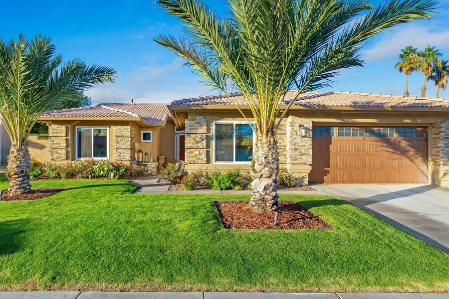 Welcome to your desert oasis in gorgeous La Quinta! This meticulously cared-for 4-bedroom, 3-bathroom home offers the perfect blend of comfort, style, and functionality. Step into a large, open-concept living space filled with abundant natural light, soaring ceilings, and a beautiful stone fireplace that serves as the heart of the home. The updated kitchen shines with stylish finishes, a spacious island, and a layout ideal for cooking, entertaining, or gathering with family and friends. The spacious primary suite offers a peaceful retreat, complete with a slider that opens directly to the pool and spa- perfect for morning dips or relaxing evenings under the desert sky. Thoughtful upgrades throughout include new windows, new electrical, newer AC, a new water heater, new washer & dryer, & a 2-car garage with epoxy floors and excellent storage. Outside, your private backyard retreat awaits- featuring a sparkling pool and spa, Alumawood patio cover with ceiling fans, & multiple seating areas perfect for enjoying sunrises & breathtaking mountain views. The desert landscaping is both beautiful and low-maintenance, creating a true outdoor sanctuary. Bonus: the property includes a 2021 golf cart- perfect for evening desert rides! Located in a fantastic school district and close to shopping, dining, and world-class golf. With no HOA and IID utility service for lower electric bills, this property is a rare find in La Quinta. Whether you're seeking a full-time residence, vacation home, or investment opportunity, this home truly checks every box.