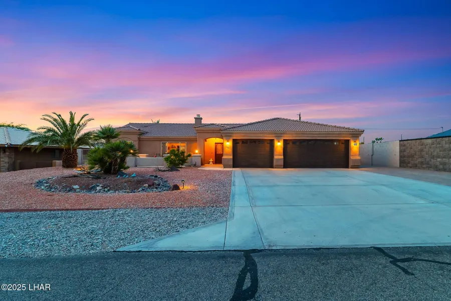 Welcome to 1981 Deer Run Dr! Located in one of the most desirable areas on the North Lake Siide, this beautifully maintained 3 bedroom, 2 bath home offers stunning backyard lake views and an inviting outdoor retreat featuring a sparkling pool and spa. The 35ft+ deep garage with epoxy flooring provides exceptional storage for watercraft, off-road vehicles, or additional toys. Inside, you'll find a bright, open concept layout with a spacious kitchen boasting abundant counter space and a generous walk-in pantry. The split floor plan ensures privacy, with the primary suite offering dual sinks, granite countertops, a walk-in tiled shower, and a relaxing soaking tub. Designed for indoor-outdoor living, the home features two separate patio areas, an expansive covered patio with three convenient access points from the interior, perfect for entertaining, and a charming front sitting area to enjoy the neighborhood ambiance. Additional highlights include ample front parking and a dedicated RV hook-up along the side of the property. Whether you're seeking a full-time residence or the perfect weekend getaway, this home delivers comfort, convenience, and an exceptional Lake Havasu lifestyle!