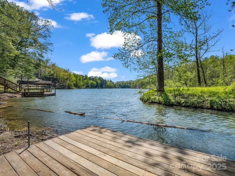 BALD MOUNTAIN LAKE & AMENITIES ARE OPEN! And this lovely lakefront home sits in a private cove on the north end of the one mile long, quiet non-motorized lake, part of the coveted Rumbling Bald on Lake Lure community. Launch your paddle board, kayak, or canoe off your private dock and paddle, take a swim, or fish in this beautiful, serene lake. The home has recently been updated with a brand-new roof and exterior paint finished in April of 2025. Interior has been updated in recent years and has a great layout with an open concept main level living space with a stone, wood burning fireplace as the centerpiece in the great room. Granite and stainless in the kitchen and an inviting dining area overlooking the level back yard with a fire pit. Primary en-suite bedroom, guest BR, & full guest bath on the main level. Two add'l BRs and a full bath are downstairs along with a family room and rec ...