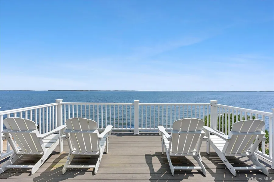 This stunning waterfront residence features over 100 feet of private beach and embodies the essence of coastal living. This three-bedroom, three-bath home built in 2024, boasts an open floor plan, highlighted by a wall of windows that captures breathtaking views of Peconic Bay, creating an inviting space perfect for entertaining. The chef's kitchen, equipped with custom cabinetry and elegant countertops, fosters culinary creativity and includes a spacious island for gathering with loved ones. Two of the bedrooms boast a private top-floor balcony, while the third bedroom is conveniently located on the first floor. The spa-inspired bathrooms are beautifully appointed with exquisite tile and fixtures. The finished lower level features a recreation room with a bar and lounge area, along with a versatile bonus room that can adapt to your needs, serving as an office, gym, or extra storage spac...