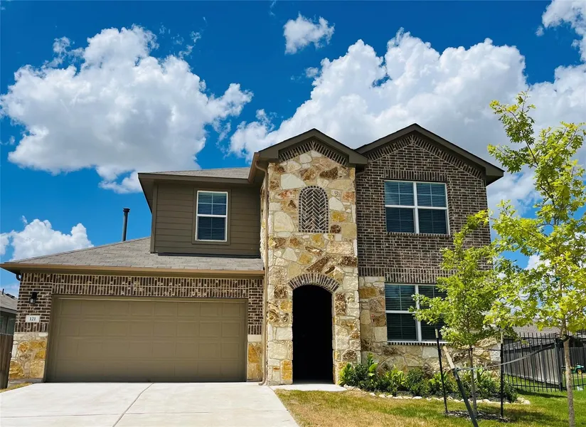Spacious 4-bedroom, 3-full-bath two-story home built in 2021, located in the enchanting Larkspur community. This home features a functional layout with two bedrooms and two full baths on the main level, plus two additional bedrooms, a full bath, and a game room upstairs. Enjoy scenic neighborhood views from the upstairs windows. The primary bedroom is conveniently located downstairs and includes a large en-suite bathroom and walk-in closet. The kitchen is open to the living room and showcases stainless steel appliances (including refrigerator), wood-look flooring, cabinetry, a center island, and granite countertops. Located in award-winning Leander ISD and zoned to the new Larkspur Elementary within the neighborhood. Community amenities include a pool, splash pad, fitness center, and hike-and-bike trails. Just a 5-minute drive to nearby H-E-B, approximately 18 minutes to Cedar Park Costc...