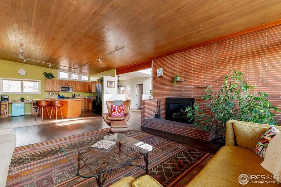 Timeless Design. Natural Light. Mid-Century Done Right. Tucked beneath mature trees, this authentic mid-century modern invites you into a world of light, texture, and architectural integrity. Expansive windows blur the line between indoors and out, while glowing wood ceilings and a dramatic brick fireplace anchor the space with warmth and character. The main living area is pure mid-century magic - exposed brick, warm hardwood floors, clean lines, and effortless indoor-outdoor sightlines. Cozy in winter by the fire and sun-drenched year-round, it's a home where art feels at home - and so does conversation. The open living space flows seamlessly into a dedicated dining area, creating an easy rhythm for everyday meals and weekend gatherings alike. The kitchen connects naturally to the heart of the home, while a separate laundry room adds thoughtful functionality. With 3 bedrooms and 2 baths, the layout balances flexibility and privacy. The primary suite offers a calm, generous retreat at the end of the day. Outside, a fully fenced backyard framed by mature trees invites gardening, pets, play, or simply soaking in Colorado sunshine. A detached shed offers convenient storage for bikes, tools, and outdoor gear - keeping the yard open and the lifestyle easy. And the location? Hard to beat. Enjoy the rare ease of walking to the neighborhood golf course and public pool - summer just feels better here. Homes like this rarely come to market intact. Preserved architectural details, clean lines, and inviting updates make this mid-century living - done exactly right. Recent updates include: New Lennox furnace and heat pump (2026), new interior paint (2026), new engineered hardwood floors (2021), new refrigerator and dishwasher (2022) and new microwave (2026). The home also features a tankless water heater (2018). Enjoy the freedom of NO HOA in this sweet neighborhood in a great location. Welcome Home!