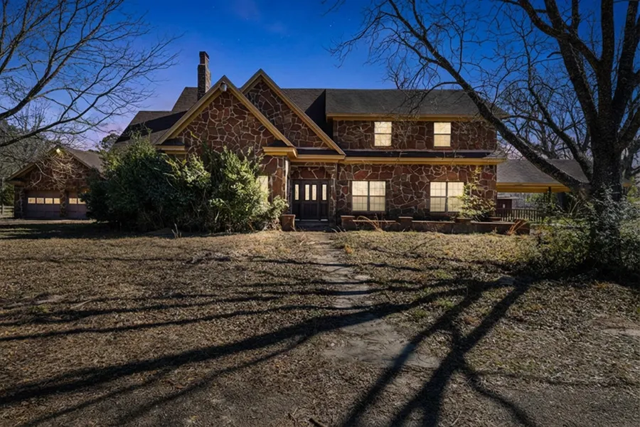 Set on an extraordinary 224.249 acres in one of the most sought-after areas of North Longview, this remarkable East Texas estate offers a rare combination of prime location, expansive land, and timeless character. The impressive 3,680-square-foot home, constructed of striking Oklahoma sandstone, sits proudly among rolling countryside and a beautiful hay meadow, creating a peaceful and picturesque setting. The rich texture of the sandstone gives the residence a commanding presence and enduring appeal. The stately rock exterior sets the tone for this impressive five-bedroom, three-bathroom residence. Inside, you’ll find soaring ceilings throughout and an abundance of windows that flood the home with natural light, creating a warm atmosphere. The home features a spacious family room with a cozy fireplace, as well as a charming office highlighted by a large rock fireplace, an ideal space for working from home or relaxing with a good book. The eat-in kitchen allows for casual dining space, while a separate formal dining room provides the perfect setting for gatherings and holiday meals. The layout includes two bedrooms and two full bathrooms downstairs, three bedrooms and one full bathroom upstairs. This property presents an incredible opportunity to restore and modernize a wonderful property filled with character and solid craftsmanship. With its expansive acreage, scenic hay meadow, and striking architectural features, this East Texas estate is a rare find and is ready for your vision to bring it to life. The property is predominantly wooded, providing excellent habitat for wildlife and making it ideal for hunting, recreational use, or creating a private retreat. For investors and developers, the 1,118 feet of road frontage and prime location present exciting possibilities for future development. Large acreage properties in this premier area of Longview are increasingly rare, making this a true legacy offering with unlimited potential. Don’t miss out on the chance to experience the tranquility, space, and possibilities this remarkable property has to offer for yourself.