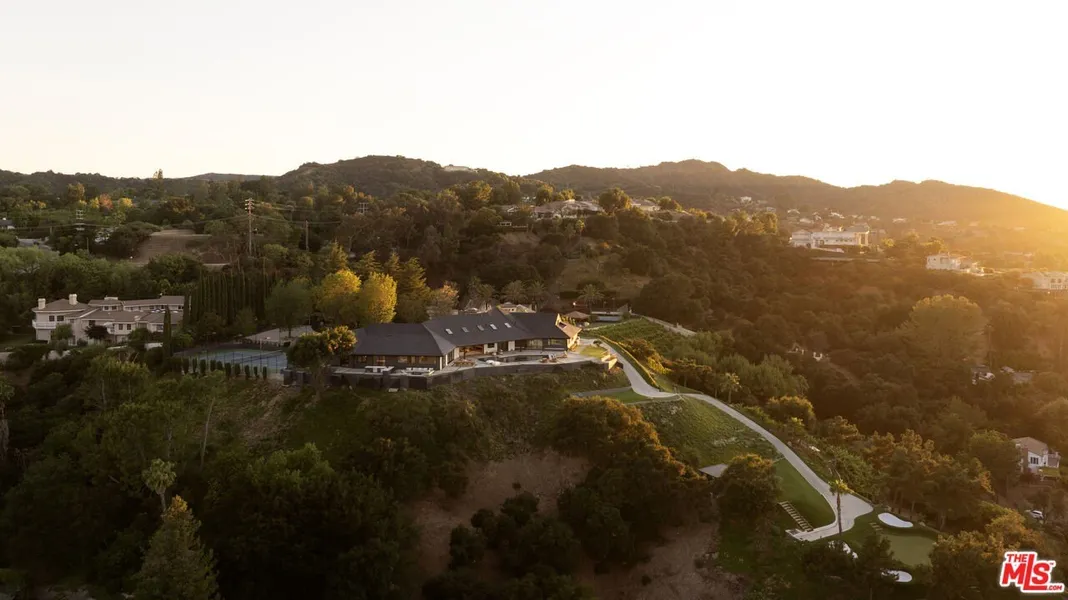 What if you could have EVERYTHING you ever wanted in a newly built home, crafted by an acclaimed experienced builder, turn-key and ready for you and your family? What is the value of absolute security, privacy, and awe-inspiring panoramic views? Behind a gated, guard-secured entrance, on 3.46 acres is this private resort in the sky that politely reminds you you've won at life. An ultra-private compound where every amenity imaginable creates a lifestyle without compromise. It's not up the winding tight streets of Bel Air, or the isolated roads up in Brentwood/Palisades hills. It's a rare new estate in an entire world of its own, but so close to all the best schools, convenient shopping, private airports, and quick access to 405/101 freeways. This is a rule-breaking unicorn property. Mornings begin with coffee and clouds, as you marvel at the majestic views of the sun rising above the mountains. Take a casual tee shot off your own 110-yard Par-3 Golf Hole (because driving to the course is for other people). Cruise in your own private cart to any of the eight tee boxes, relax down in the luxurious golf shack, then putt on a cliffside green with 100-foot drops, keep things thrilling - humility optional. Afternoons are for sunset tennis on your North/South lighted championship court, and evenings? Choose your adventure: a private movie theater, an upstairs entertainment cocktail lounge, or al fresco BBQ sipping . A dedicated staff wing and kitchen ensure every gathering runs effortlessly, whether you're hosting an intimate dinner or a full-scale soiree that guests will reference for years. This isn't just a home. It's a legacy property, and a place where every day feels suspiciously like vacation. At this new price, the value for this level of luxury is impossible to ignore.