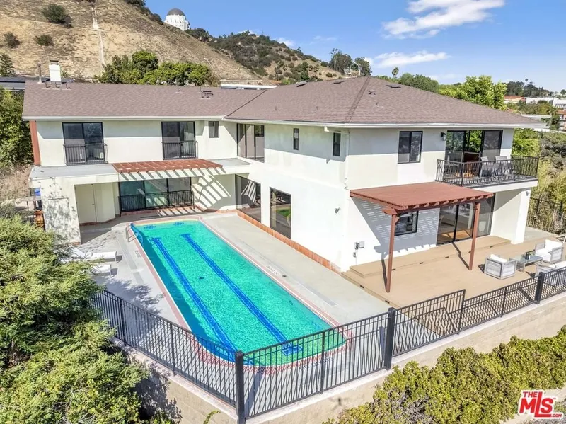 At the top of Los Feliz Estates (yet an easy walk from Los Feliz Blvd.) 2267 Winona offers a rare Los Angeles vantage point with uninterrupted views from Griffith Park to Catalina. L. A.'s iconic Observatory sits just above the residence, like a watchful sentinel on the hill. This 4,792 sq. ft. modern home on an XL 16,665 sq. ft. corner lot (only 1 contiguous neighbor!) is designed around the horizon, with open living and dining areas framed by walls of glass and a lap pool that juts into the sky, turning the city below into part of the architecture. Upstairs are 4 bedrooms (3 suites + a hallway bathroom) including a primary of remarkable scale with wraparound vistas and a boutique-style walk-in closet (formerly a bedroom of its own). Other features include hardwood floors, 2-story foyer, updated kitchen and baths, and formal living room with fireplace. Outside are a motor court, a direct-entry garage, a side yard for pets and play, a newer roof and deck, and 24/7 HOA-provided guards in patrol cars. HOA also covers some landscaping services. This residence commands attention, reflecting its cinematic exposure, dramatic design, and unmatched lifestyle, making it one of the most exceptional and sought-after properties across Greater Los Feliz and the Hollywood Hills.