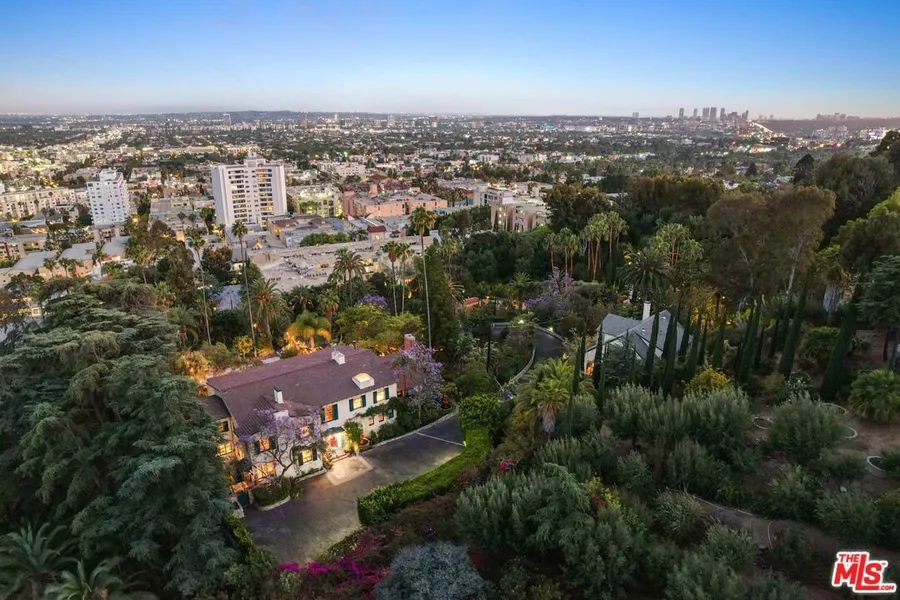 This legendary compound has been passed down through generations of Hollywood royalty. At the top of La Brea Terrace, behind 2 gates, is a quarter-mile-long driveway that winds up to 3 separate residences, overlooking all of Los Angeles and Downtown. The property consists of 6.5 acres of mature landscaping with wonderful trails that meander around the property. The privacy offered by the acreage and hillsides is unparalleled, enhanced by an alarm system and security cameras for increased security. The primary home (6,700 ft, 4 beds upstairs) is a classic and charming villa with plentiful entertainment space and wonderful indoor-outdoor California flow. The secondary home (3,100 Ft, 2 Beds) is light and bright, featuring its own private patio and a small enclosed yard. The 3rd structure (not shown In photos) (500 ft, 1 bed) is an apartment situated above numerous parking garages. Only 2 blocks north of Sunset and a 5 minute walk to the entrance of Runyon Canyon. Not Historical.
