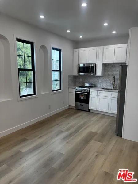 Welcome to this bright, completely remodeled studio featuring modern black window finishes and abundant natural light throughout. The thoughtfully updated kitchen showcases sleek new cabinetry, upgraded countertops, and brand-new appliances. The fully renovated bathroom offers contemporary finishes and a clean, modern design. Fresh updates throughout create a stylish and move-in ready space perfect for comfortable city living. Located in the heart of Los Angeles' vibrant Koreatown neighborhood, this property offers unbeatable access to dining, shopping, and entertainment. Just minutes from major corridors like Olympic Blvd and Wilshire Blvd, residents enjoy convenient freeway access and public transportation options. The area is known for its diverse restaurants, lively atmosphere, and walkability, making it an ideal location.