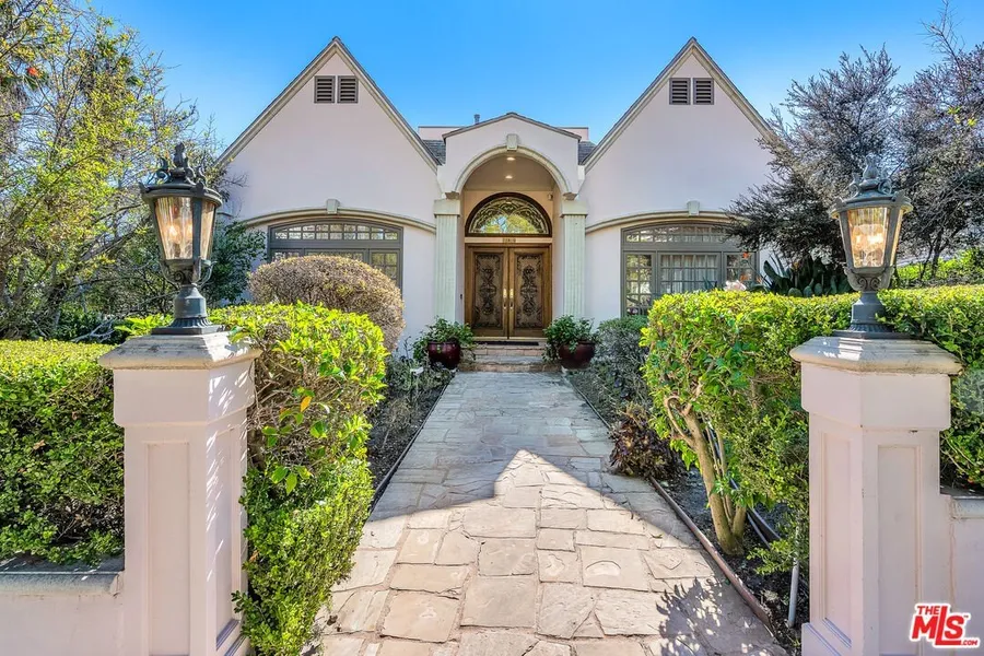 Nestled in the prestigious neighborhood of Westwood, this elegant Contemporary Mediterranean estate offers over 4,500 square feet of refined living space designed with a perfect balance of grand scale and soulful warmth. The journey begins in a breathtaking entry foyer where dramatic soaring ceilings, etched-glass double doors, and a grand chandelier set a sophisticated tone that carries throughout the home. Designed for both seamless entertaining and comfortable daily life, the formal living and dining areas flow effortlessly into an airy family room anchored by a timeless fireplace and custom built-ins, with French doors opening to patio and backyard. The expansive chef's kitchen serves as the heart of the home, featuring granite countertops, a center island, and generous storage to accommodate any culinary endeavor. Upstairs, a sweeping staircase leads to t bedrooms, including spacious guest suites with walk-in closets and a luxurious primary suite that serves as a true sanctuary, complete with its own private balconies, an inviting fireplace, dual walk-in closets, and a spa-like bathroom featuring a soaking tub and a private sauna for ultimate relaxation. This residence is complemented by a dedicated laundry room and abundant storage, all situated in a prime central location just minutes from the world-class dining and shopping.