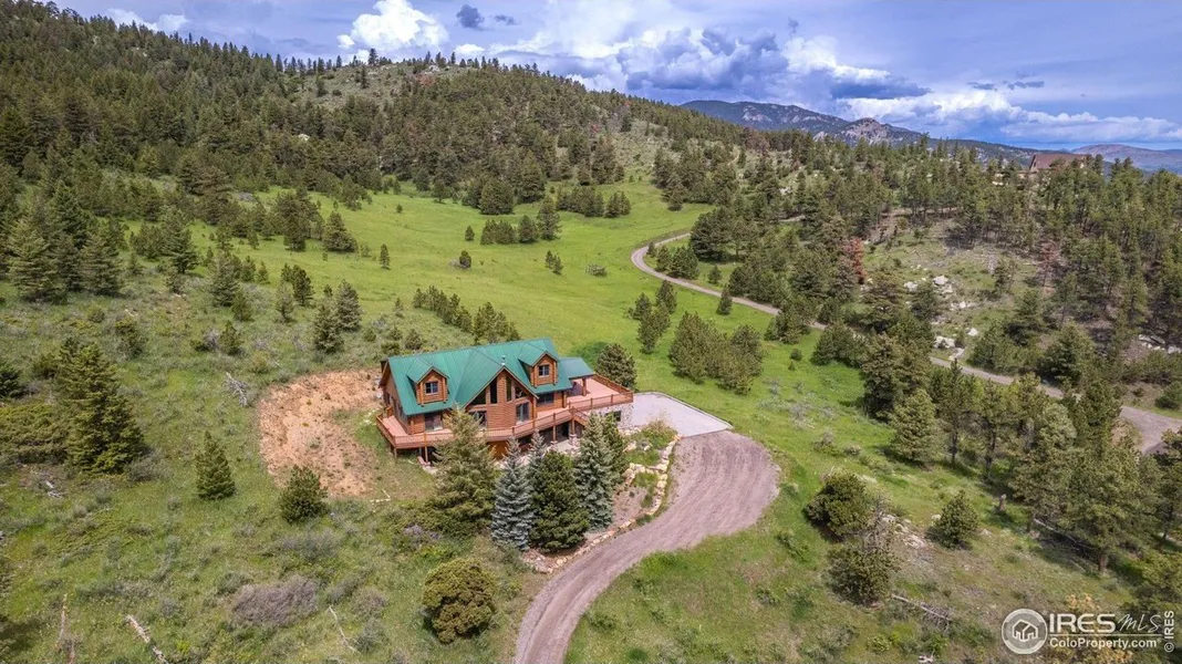 Privacy. Quality 2x6 & log construction w/ 4 beds, 5 baths, 5-car attached garage/shop. Main floor owners suite w/ heated floors. 2nd Owner's suite up. Trex 1600 ft. deck w/ awesome views! Wildlife abounds. Hickory hardwood floors. Gourmet kitchen w/hickory cabinets, granite, & stainless. Metal roof, finished walk-out, covered deck. 20 min. to Loveland. Close to several recreational lakes. No HOA or tax district. 0.6 mile to paved road CR18E. No metro district & no HOA. High speed internet.