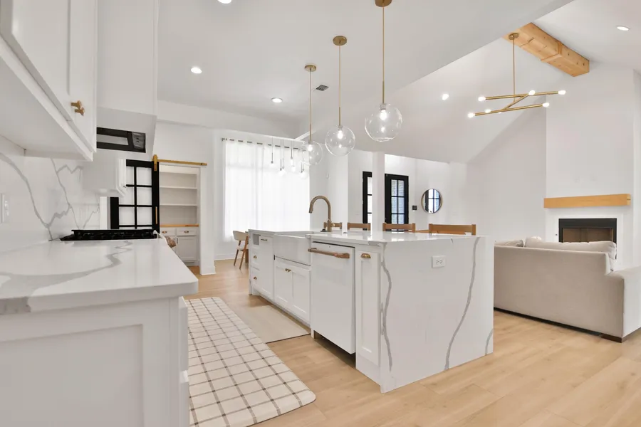 Welcome to this beautifully designed 4-bedroom 3-bath home on the corner lot featuring a 2-car garage and exceptional curb appeal. Step inside to a bright, open-concept living space with large windows that include a spacious flex area filling the home with natural light. The interior offers a warm and elegant feel that brings the gold finishes and natural wood touches together throughout. The modern kitchen also features an open layout with a floating island, sink, dishwasher, and built in pantry cabinets for ample storage. The flex area features plenty of space that includes a sliding door for seamless access to the covered patio. The spacious primary suite includes a walk-in shower, his and hers sinks, built in personal storage, and a private toilet room. A cozy window seat is located in the large built-in walk-in closet. When stepping outside to a covered patio that overlooks the grea...