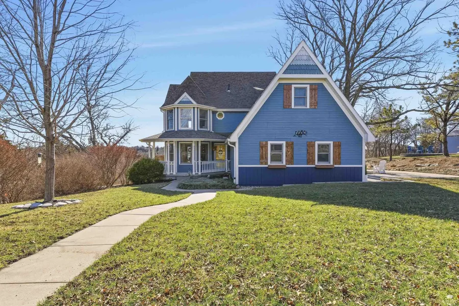At 3215 Driftwood Drive, timeless Victorian-inspired design meets modern comfort, as this 1990-built home features reclaimed millwork from a historic downtown Manhattan property, bringing authentic character to elevated lake living. Thoughtfully updated, this 4-bedroom, 3.5-bath, 2-story home with an attached 2-car garage blends character and comfort on 1.22 acres overlooking Tuttle Creek Lake. Inside, wood floors, solid doors, and stained oak millwork create warmth and depth. The renovated kitchen offers new cabinetry and appliances, while refreshed baths and laundry add everyday convenience. Step onto the wraparound deck or the Primary Suite's balcony to take in serene lake views and the natural surroundings. An additional 32x36' detached two-car garage with heat & power provides excellent space for vehicles, hobbies, or workshop. Whether you're looking for full-time living or a seasonal retreat at the lake, this property offers a rare mix of quality, craftsmanship, and location.