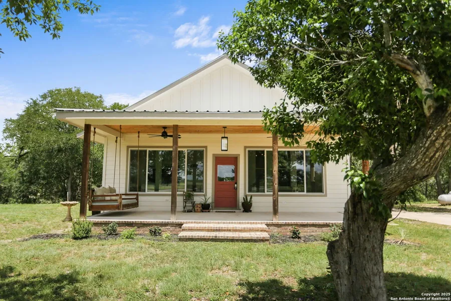 Nestled on over 2.6 acres in the peaceful countryside of Marion, TX, 6160 FM 2538 offers a truly unique blend of rural tranquility, historic character, and modern upgrades. This beautifully maintained 3 bedroom, 2bathroom home showcases an open concept layout with abundant natural light, stylish finishes, and authentic 1920s craftsmanship rarely found today. Originally constructed in the 1920s and relocated from Hemlock Street in downtown San Antonio during the 1940s, the home proudly features restored longleaf pine hardwood floors, original wavy pane antique glass windows with storm protection, and durable 12inch tongue and groove wood plank construction. The master bedroom displays the stamped original wood ceiling from the Petrich Saur Lumber Co., a testament to its architectural legacy. Custom Craftsman style built-ins, rich wood trim, and period accurate details add timeless warmth to the living and dining spaces. A thoughtful and extensive renovation, with an estimated investment of approximately $145,800, has modernized this historic treasure while preserving its character. Highlights include James Hardie fiber cement siding with exterior insulation and warranties, a covered 11' x 28' front porch, brick skirting, and a 22' automatic entry gate with secondary manual gate and metal fencing for enhanced security. Energy. efficient upgrades such as open cell attic spray foam insulation, PEX plumbing, UVb locking windows, and a 9 GPM tankless water heater provide comfort and peace of mind. The bathrooms, kitchen, and interior finishes have all been refreshed, complemented by a professionally serviced fireplace and beautifully restored original ceilings, walls, and woodwork. Beyond the home, a spacious 1,200 square foot workshop with full power and a 50 amp RV hookup is ready to support hobbies, equipment, or more serious projects. The acreage includes over 300 feet of private, springfed Cibolo Creek frontage with deeded water rights to the creek's centerline - perfect for fishing, swimming, kayaking, or simply relaxing by the water. Per the sellers, there are no restrictions on the property, along with the ability to add multiple homes if desired. This offers incredible flexibility for multigenerational living, investment opportunities, or agricultural use. Surrounded by mature trees, wideopen fields, and panoramic views, this property promises unmatched privacy and inspiring natural scenery. Conveniently located near Seguin, San Antonio, and major highways, 6160 FM 2538 combines country serenity with modern accessibility. More than just a house, it is a rare piece of South Texas history - carefully restored, thoughtfully upgraded, and ready to deliver a lifestyle of peace, possibility, and timeless charm.
