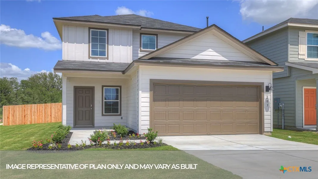 MARCH ESTIMATED COMPLETION. The Nicole is our largest floorplan available. This two-story home offers 4 bedrooms, 3 bathrooms, a gameroom, and 2 car garage all within 2,473 square feet of comfortable living space. Entering the home, cross the foyer and find a short hallway to the downstairs secondary bedroom and a full bathroom. The family room, dining area, and kitchen are open, making entertaining and everyday living a shareable experience for family and friends. The kitchen features an island with undermount sink, granite countertops, 4" backsplash, a pantry closet, 36" upper cabinets, and stainless-steel appliances, including a gas range. Moving upstairs, you'll enter the gameroom. The oversized primary bedroom is tucked away from the gameroom. Stretch out and relax at the end of your day in this spacious and private ensuite. The primary bathroom features a walk-in shower, cultured marble vanity with dual sinks, separate toilet area with a door, and an enormous walk-in closet. This will be the closet of your dreams, spacious enough to add a dressing island or chaise lounge for a full luxurious experience. The additional upstairs bedrooms and bathroom are located opposite the primary bedroom. The bedrooms feature walk in closets with shelving. Both secondary bathrooms include a shower/tub combination. The utility room rounds out the upstairs space, making laundry chores a breeze. The Nicole includes vinyl flooring throughout the common areas of the home, and carpet in the bedrooms, gameroom and stairwell. A covered back patio is also included in the Nicole plan. All our new homes feature Bermuda sod, an irrigation system in the front and back yard, and a 6' privacy fence around the back yard. This home features our America's Smart Home base package, which includes the Video Front Doorbell, Front Door Deadbolt Lock, Home Hub, Thermostat, and Deako(R) Smart Switches.