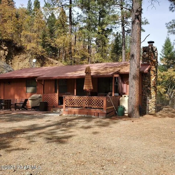 Escape to your own private cabin in the pines. Located at approximately 6800 feet of elevation in the Bradshaw mountains is a sleepy little community with exceptional people and great views. Experience all 4 seasons in the Bradshaws. This cozy cabin boasts 3 bd 2 bath with large great room. Attic insulation has been foamed for energy efficiency. On Demand propane hot water heater, Propane heat, Wood Burning stove. A full kitchen and dish washer. Large lots has Garage, Conex and Side Storage. Home has a Producing Well and Community water. Lot has been fenced in around perimeter. This is an amazing opportunity which does not present itself very often. Breezy Pine is a Gem with unbelievable neighbors and the Home town feel many people have searched but never found.