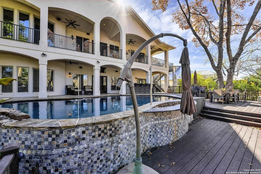 Welcome to 514 Woodlake Drive on Lake McQueeney! This 4300 sq ft home has it all! The main house is upstairs with a great room and views of the lake. Beautiful wood floors and a gas log fireplace warm up the space. French doors lead outside to the large covered porch that overlooks the pool and lake. The large kitchen is fit for a chef with 6 burner gas cooktop, double GE Monogram ovens plus built in GE Monogram refrigerator, walk in pantry, island kitchen plus breakfast bar. The main dining space is right off the kitchen with an abundance of windows and great views. The master bedroom suite has outdoor access to the patio, wood floors and a large bathroom suite with soaker tub, walk in shower, double vanity and his/her closets. There is an upstairs guest suite, full laundry room and powder bath. Off the entry is the office with outdoor access to the front porch and the elevator which takes you downstairs to the guest area. Downstairs you'll find another full kitchen, game area and second living room, plus 2 additional bedrooms, a jack-n-jill bath, a second convenient stackable washer and dryer for guests, plus a bunk-room/playroom. Head outside to the backyard and lake fun, with an outdoor kitchen, pool and tons of deck space perfect for entertaining. Down by the lake, you'll find a firepit, jet ski ramp (or swim platform) and boat house with concrete sundeck.