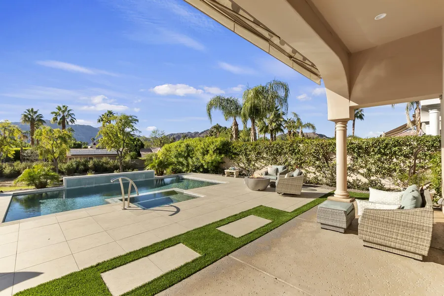Seasonal lease! Exceptional contemporary 3-bedroom home in Rancho La Quinta has beautiful mountain views, with southwest exposure. This is a fully turnkey property with large pool and spa! The master bedroom has a king bed adjacent to its own private patio. The second guest is spacious and has a king bed, and private bath. The den is equipped with a pull-out couch for guests and has its own private bath. The backyard is spacious, has a lovely barbeque and boasts a large swimming saltwater pool and spa. There are lovely sunsets also and expansive mountain views! Come make this your vacation getaway! Please call for availability and pricing!