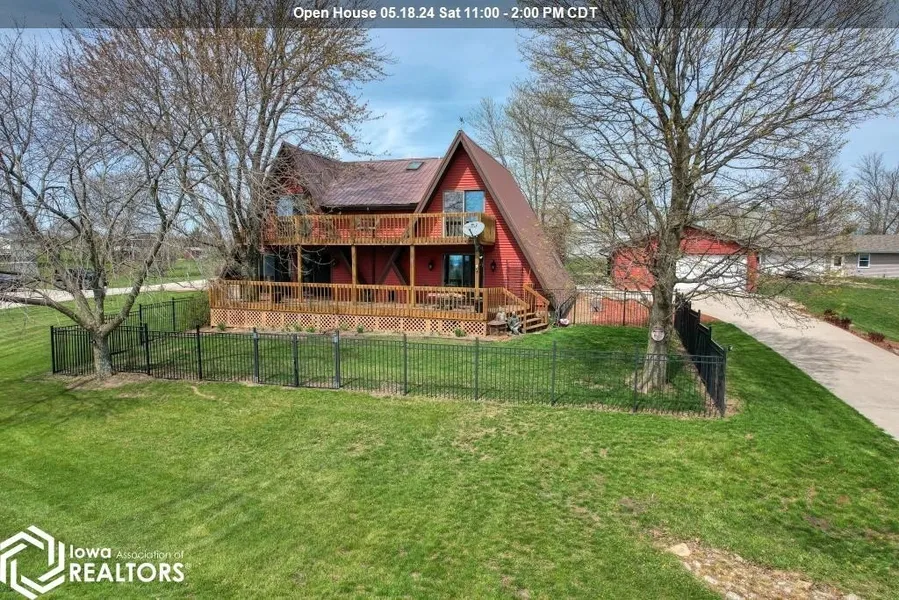 PRICE REDUCED $15,000!!! Here it is! The ultimate lake home with wide open spaces overlooking Rathbun Lake at the Wind-n-Waves Subdivision. This 3 bedroom, 3 bath property sits on over 1/2 acre. 2-car detached garage as well as an amazing 36' x 45' fully insulated garage with a 12 foot door and ample storage for all of your toys. The double A-frame home has been meticulously maintained over the years with a 2nd A-frame with full basement added in 1987, the garage was also enlarged at this time. In 2010, the decks were replaced/added along with a 6-car garage with storage loft. in 2020, additional concrete was added. Beautiful views from the lower and upper decks alike. Finished basement has a sauna, full bath, laundry and a huge spare bedroom. There are large closets with ample storage throughout, a walk-in pantry and small utility room right off the kitchen. The sump pump handles tiling around the perimeter of the foundation. Partially fenced yard for your 2 or 4 legged babies. 5 fruit trees, including peach, apple, pear, plum and cherry trees, as well as 3 concord grape vines on the arbor. This property is backed up with a new whole house 20KW generator with automatic transfer switch covering the home and 2 garages. Large garage has running water. Appliance package with sale includes a brand new dishwasher (May, 2024), along with a large dehumidifier and upright freezer.